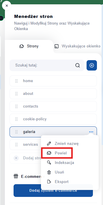 Edytor SuperSite oferuje możliwość tworzenia, duplikowania, zmiany nazwy oraz usuwania podstron na własnej stronie internetowej.