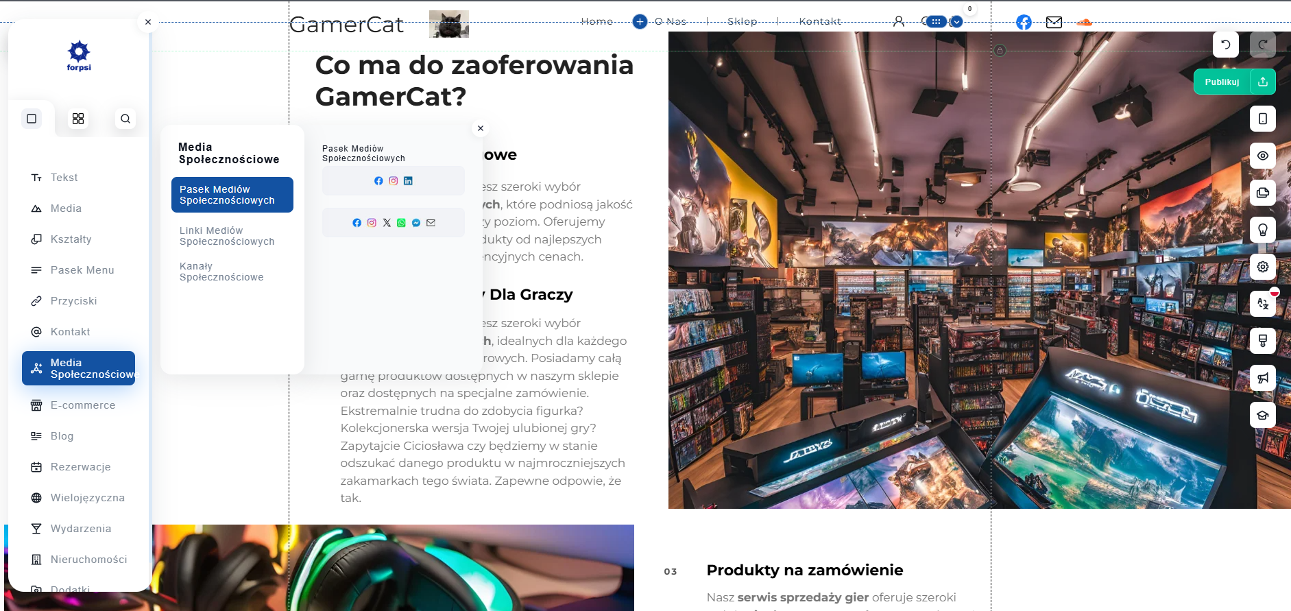 Dodawanie linków i mediów społecznościowych do strony w edytorze SuperSite