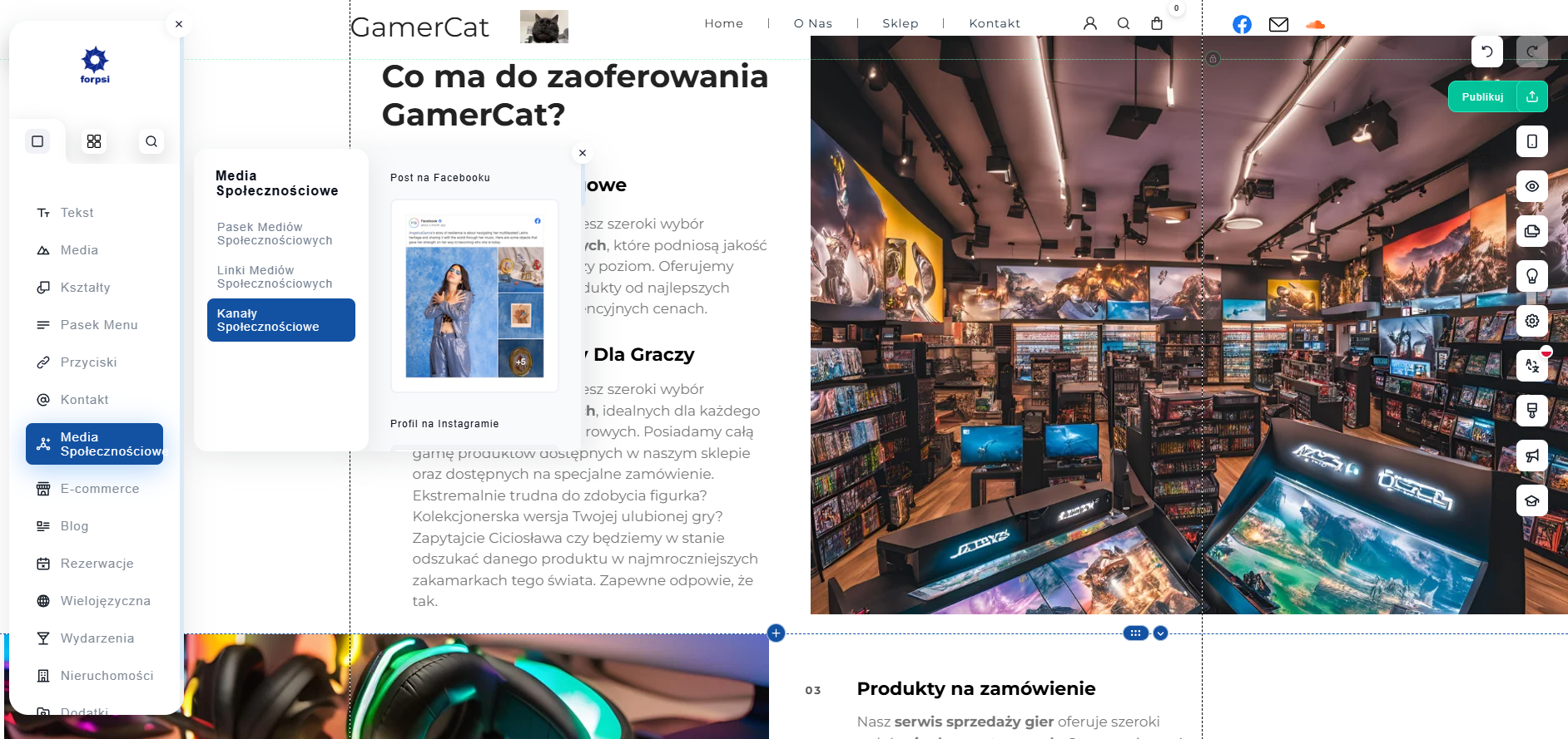 Edytor SuperSite pozwala na dodawanie linków do sieci społecznościowych oraz wykorzystanie komponentów, które umożliwiają integrację strony internetowej z platformami mediów społecznościowych.