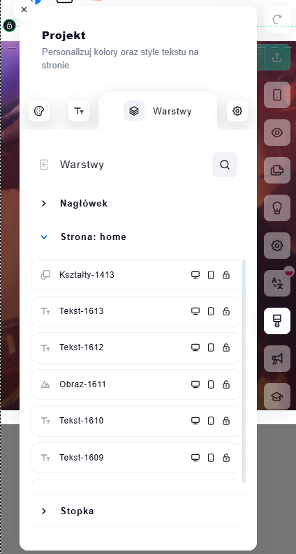 Edytor SuperSite oferuje funkcję zaawansowanych Warstw, która pozwala na sprawowanie pełnej kontroli nad elementami na stronie. Funkcjonalność pozwala na: