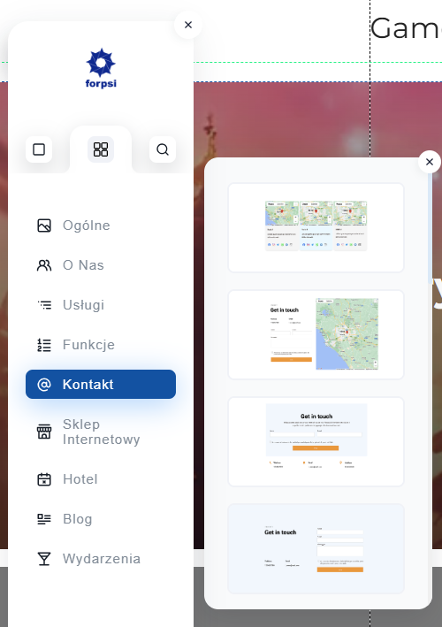 Każda sekcja zawiera wiele komponentów i jest stworzona do spełnienia zróżnicowanych potrzeb – od kontaktów do usług lub sklepu online.