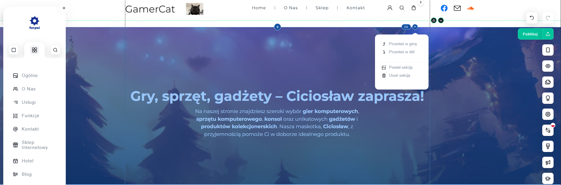 Sekcje w edytorze SuperSite są domyślnymi blokami komponentów, stworzonymi przez naszych designerów, pozwalającymi na prostą edycję i rozwój strony internetowej.